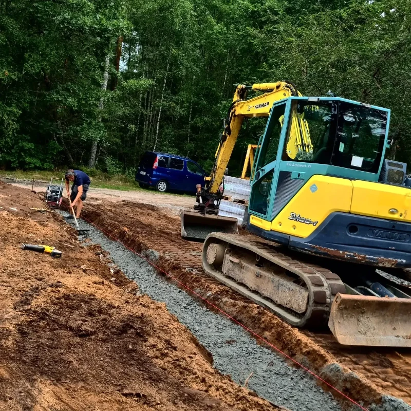 AB Maskin Support erbjuder dräneringstjänster i Alingsås med fokus på kundnöjdhet och kvalitet. Vi förstår vikten av att skydda ditt hem mot fuktskador, och därför använder vi endast de mest effektiva dräneringssystemen. Vårt team av erfarna specialister arbetar nära dig för att förstå dina specifika behov och utveckla en plan som passar just ditt projekt. Genom att utnyttja vår moderna maskinpark kan vi garantera snabba och effektiva arbeten, vilket minimerar störningar och maximerar resultatet. Lita på oss för att hålla din grund torr och säker.